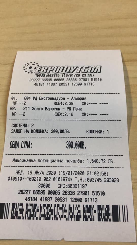 Това са фишовете на наш клиент, който е играл сингъл с 400 лв. ранния мач и след това права колонка с 300 лв. двата късни мача:
