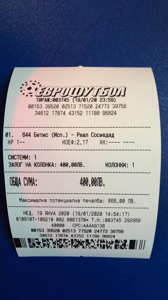 15:00 часа - Реал Бетис v Реал Сосиедад - прогноза 1 - коеф. 2.20 Резултат 3:0 Печели!